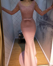 • Load image into Gallery viewer, Long-Sleeves-Bridesmaid-Dresses-Mermaid-Evening-Gowns-Lace-Appliques