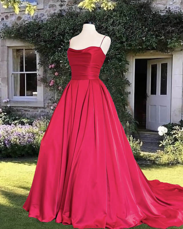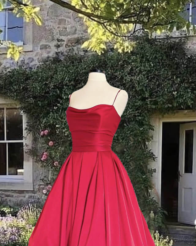 This A-line floor length satin gown is the perfect choice for your formal dance. Featuring a cowl neck with spaghetti straps and made with luxe satin fabric, this burgundy dress will make your night unforgettable !